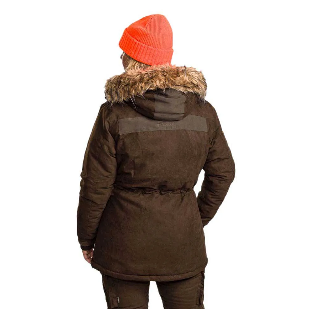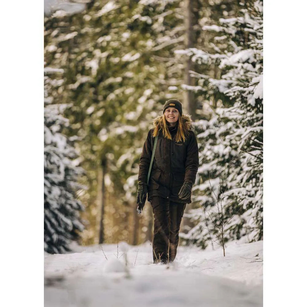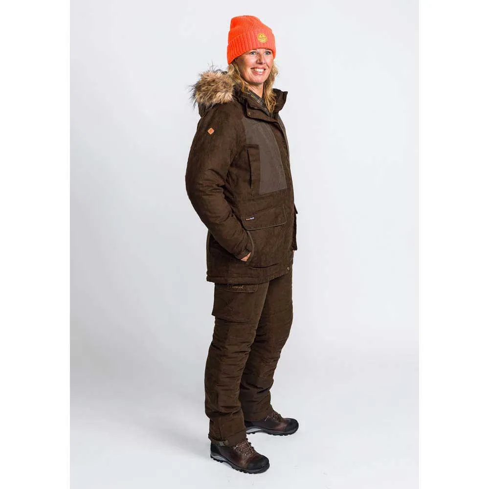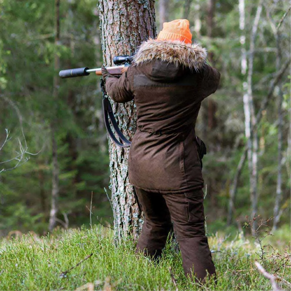 Abisko 2.0 ist die perfekte Jagdjacke für kalte Wintertage. Gefüttert mit unserer neuesten Pinewood Ultra Body-Heat-Technologie, die den Komfort dieses Kleidungsstücks maximiert. Die Metallic-Punkte im Futter reflektieren die Körperwärme und sorgen für bis zu 25 % zusätzliche Wärme. Eine längere Jagdjacke, wattiert für zusätzliche Wärme, mit wind- und wasserdichter Membran und getapten Nähten. Bequeme Handwärmertaschen mit Fleecefutter, geräumige Fronttaschen mit Magnetknöpfen und Funkgerättasche auf beiden Seiten. Zwei-Wege-Reißverschluss und Magnetknöpfe auf der Vorderseite. Sie können die Passform optimieren, indem Sie die Taille, den Saum und die Kapuze mit Riemen und die Ärmelbündchen mit Klettverschluss anpassen. Auch eine abnehmbare Kapuze mit Kunstpelz.