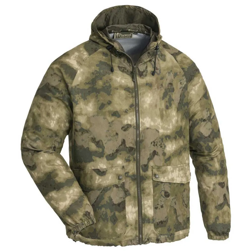 Leichtes und luftiges Camouflage-Set. Die Jacke hat große Vordertaschen mit Druckknöpfen, die Hose hat zwei Taschen mit Reißverschluss und einen elastischen Bund mit Kordelzug. Gummizug an Bein und Bündchen. Feste, verstellbare Kapuze. Behandelt mit Bionic Finish® Eco für zusätzliche wasser- und schmutzabweisende Eigenschaften. Feste, aber verstellbare Kapuze.