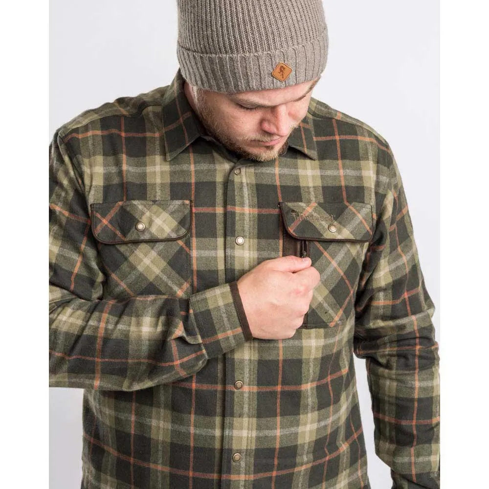 Exklusives und robustes Flanellhemd in tollen Farben. Gefüttert mit High-Vent™ Mesh für zusätzlichen Komfort. Zwei Brusttaschen mit Patte und eine Reißverschlusstasche. Drück Knöpfe.