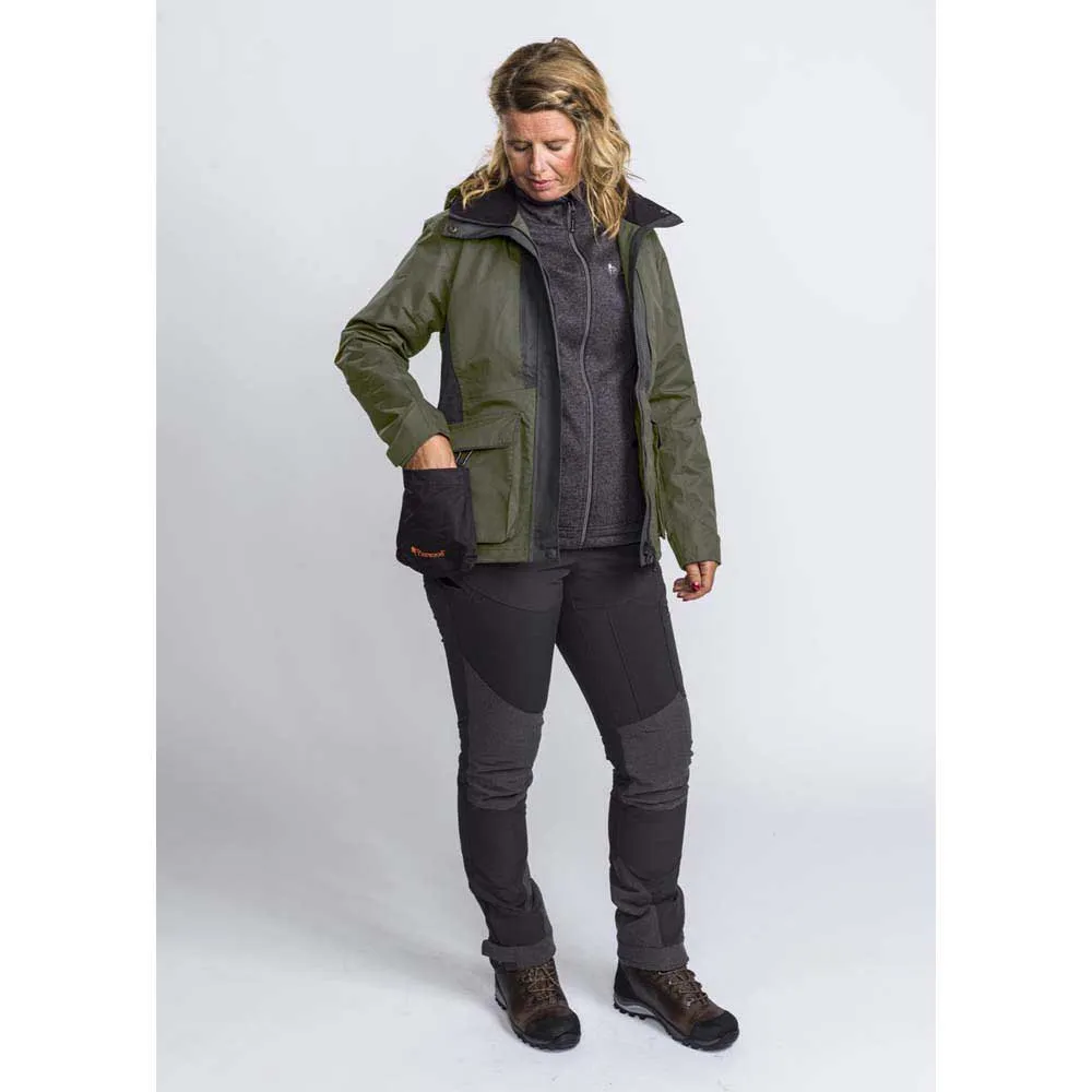 Geräumige Vordertaschen auf beiden Seiten – mit Magnetknöpfen und D-Ring, wo die Deckel mit Klettverschluss in der Tasche befestigt werden können. Handwärmetaschen und doppelte Brusttaschen sowie drei Innentaschen – leicht zu erreichen, eine für Hundekotbeutel.