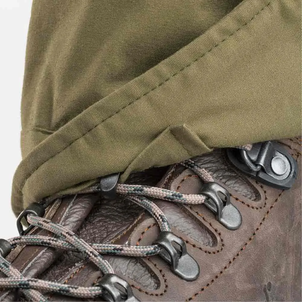 Vielseitige und robuste Hose, geeignet für Wandern, Alltag und Jagd. Gewachste Oberfläche und getapte Nähte für zusätzliche wasserabweisende Eigenschaften. Belüftungsreißverschlüsse auf beiden Seiten. Geräumige Taschen mit Reißverschlüssen. Verstellbare Taille mit Klettverschluss. Verstellbarer Boden- und Stiefelhaken.