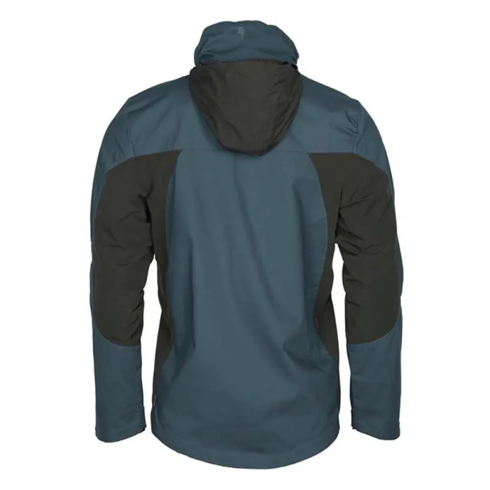 Eine Jacke mit Abschnitten aus dehnbarem Tc-Material. Es ist dünn und mit Mesh gefüttert für zusätzliche Atmungsaktivität. Die Oberfläche ist gewachst und imprägniert für wasserabweisende Eigenschaften und hat einen UV-Schutz gegen die Sonne. Die Jacke hat eine Kapuze, die einfach unter den Kragen geklappt werden kann, und schließt mit einem Reißverschluss und Knöpfen. Die Unterseite ist mit Riemen verstellbar und die Manschetten haben Kletten, um Kälte und Nässe fernzuhalten. Auf der Vorderseite befinden sich zwei Eingrifftaschen mit Knöpfen, eine Innentasche mit Reißverschluss und eine Tasche mit Reißverschluss an der Öffnung der Jacke. Dies ist eine bequeme und flexible Jacke für die wärmere Jahreszeit mit all ihren Wetterbedingungen.