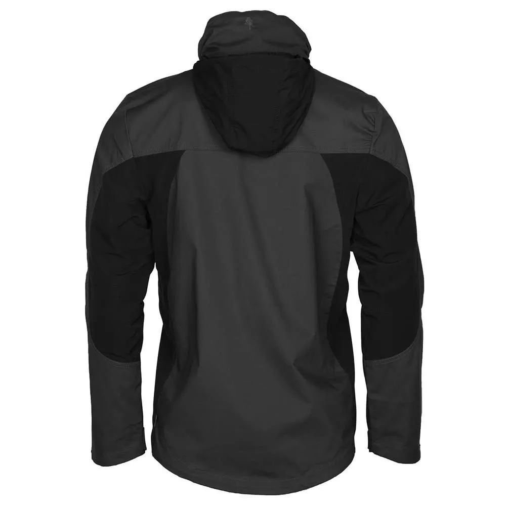 Eine Jacke mit Abschnitten aus dehnbarem Tc-Material. Es ist dünn und mit Mesh gefüttert für zusätzliche Atmungsaktivität. Die Oberfläche ist gewachst und imprägniert für wasserabweisende Eigenschaften und hat einen UV-Schutz gegen die Sonne. Die Jacke hat eine Kapuze, die einfach unter den Kragen geklappt werden kann, und schließt mit einem Reißverschluss und Knöpfen. Die Unterseite ist mit Riemen verstellbar und die Manschetten haben Kletten, um Kälte und Nässe fernzuhalten. Auf der Vorderseite befinden sich zwei Eingrifftaschen mit Knöpfen, eine Innentasche mit Reißverschluss und eine Tasche mit Reißverschluss an der Öffnung der Jacke. Dies ist eine bequeme und flexible Jacke für die wärmere Jahreszeit mit all ihren Wetterbedingungen.