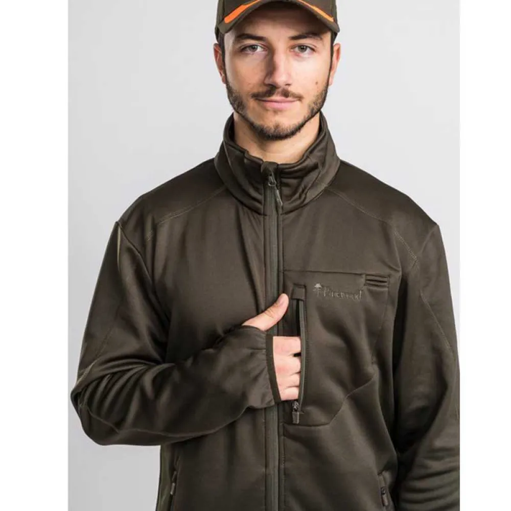Eine dünne und geschmeidige Jacke/Pullover aus hochelastischem Powerfleece, die maximale Flexibilität und Komfort bietet. Innen gebürstet für ein weiches und angenehmes Gefühl. Praktische Taschen, darunter Innentaschen und Brusttasche mit Öffnung für Antenne/Kabel. Ärmel mit verstärkten Daumenlöchern. Verstellbarer Saum.
