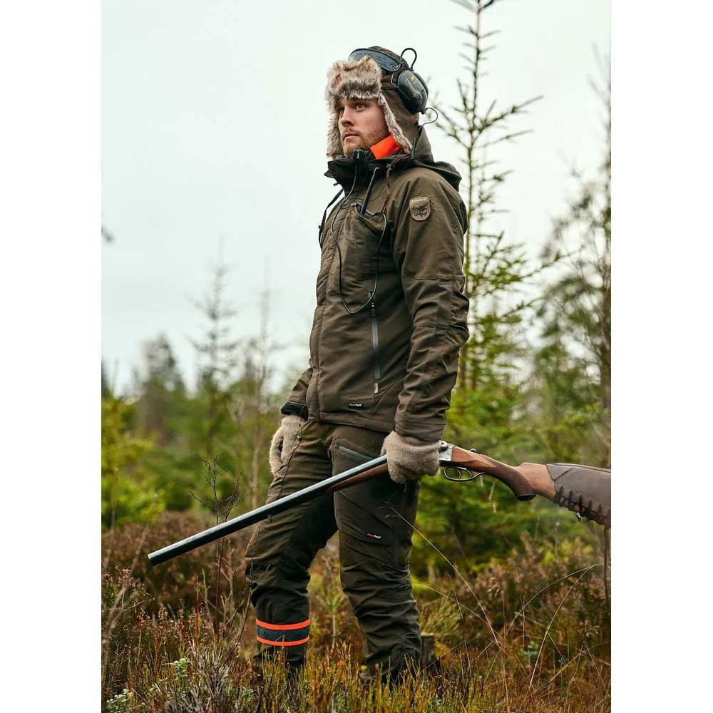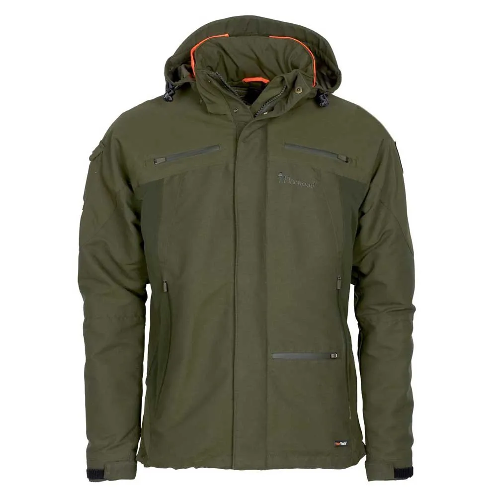 Pinewood Hunter Pro Xtreme ist unsere Hochleistungs-Jagdjacke mit wind- und wasserdichter Membran und getapten Nähten. Ausgestattet mit Stretcheinsätzen für zusätzlichen Bewegungskomfort. An den Seiten befinden sich Belüftungsöffnungen mit Mesh-Futter, die mit Reißverschlüssen leicht zu öffnen sind. Wenn der Belüftungsreißverschluss geöffnet ist, erhöhen Sie die Luftzirkulation, wodurch Schweiß und Feuchtigkeit reduziert werden. Dies ist eine großartige Funktion bei einem höheren Aktivitätsniveau oder einer höheren Körpertemperatur. Das Halsband hat eine signalorange Farbe für zusätzliche Sichtbarkeit. Auch in einem etwas höheren Modell, um Hals und Gesicht weiter vor Wind und Kälte zu schützen. Abnehmbare und verstellbare Kapuze sowie verstellbare Bündchen, um den Wind weiter abzudichten und die Passform zu optimieren. In dieser Jacke finden Sie mehrere praktische Taschen, eine geräumige Wildtasche und integrierte Hosenträger. An beiden Brusttaschen finden Sie eine Funkgeräteöffnung, passend für Rechts- und Linkshänder, oder eine praktische Funktion, wenn Sie sowohl Funkgerät als auch GPS oder andere Ausrüstung in der Jacke verstauen möchten.
