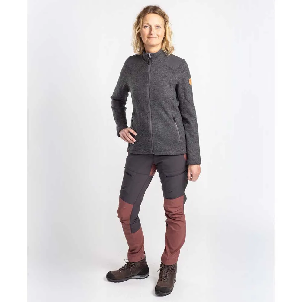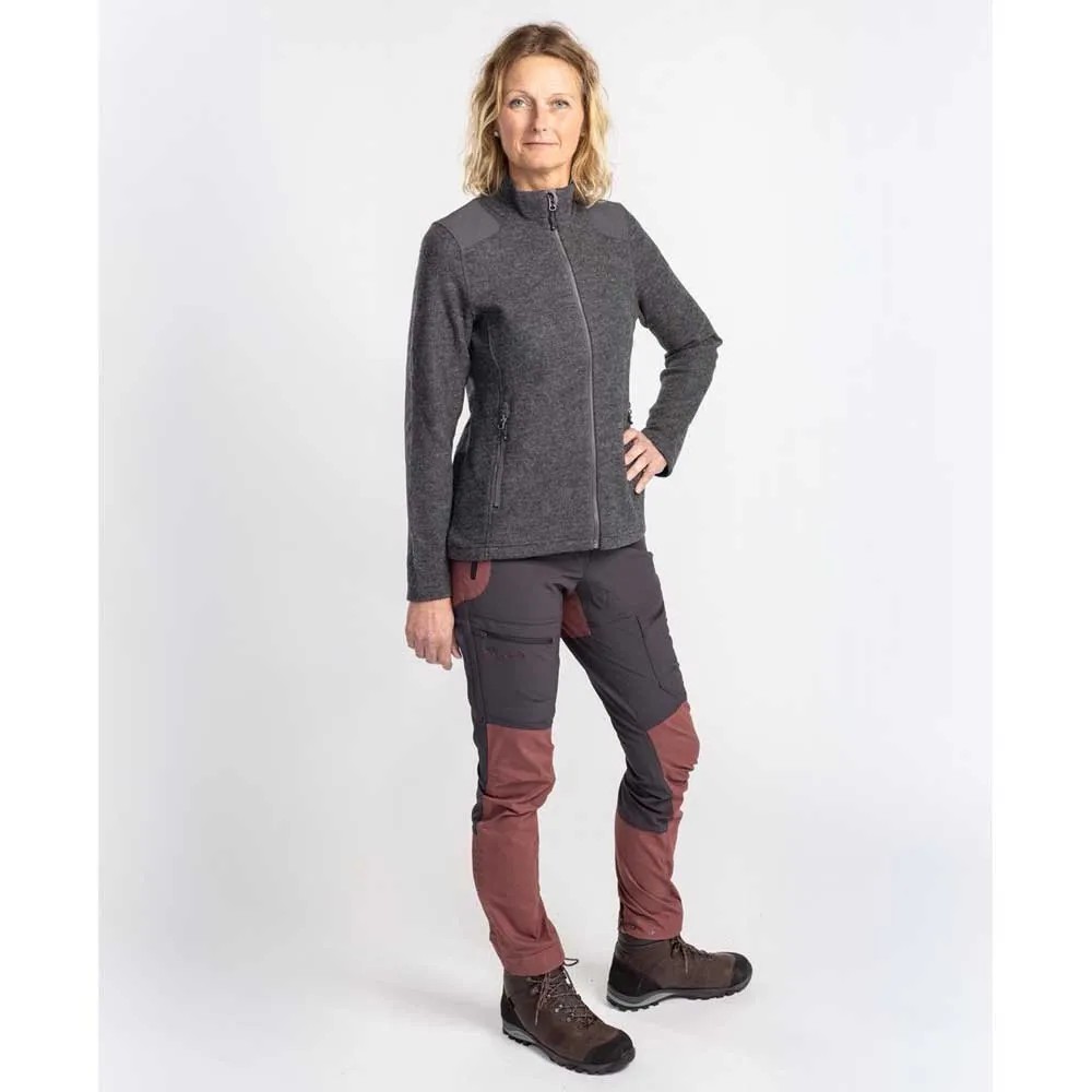 Jacke in Melange-Optik aus 100 % Wolle. Die Wolle ist nach Oeko-Tex® Klasse 1 zertifiziert und stammt aus Südamerika, was sie mulesingfrei macht. Wolle ist ein praktisches selbstreinigendes Material, das trotz Nässe wärmt. Die Jacke hat einen Reißverschluss vorne und zwei Reißverschlusstaschen für die sichere Aufbewahrung. Verstärkungen in TC an Schultern und Ellbogen.