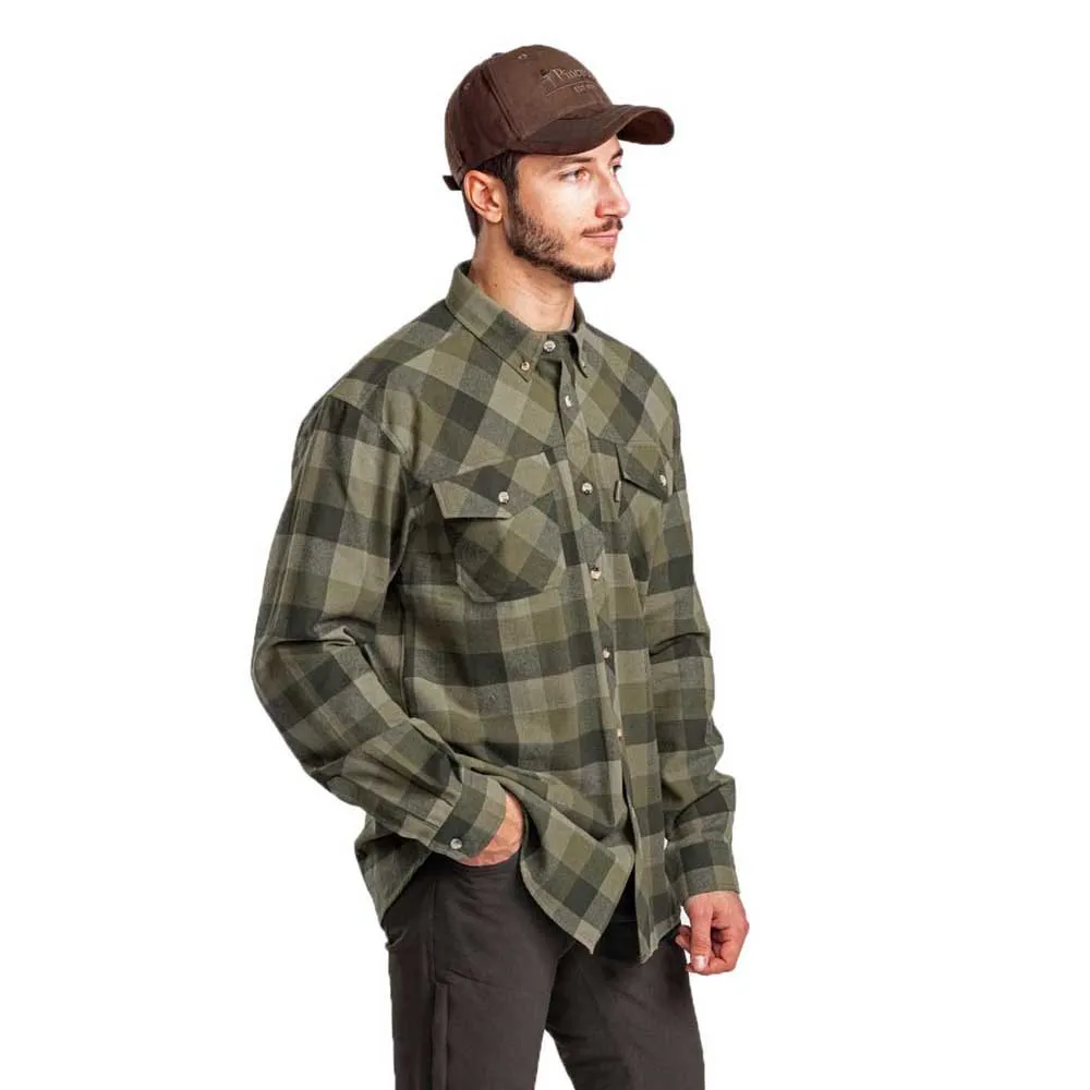Hemd aus Flanell mit schönem Muster, geeignet für Arbeit und Freizeit. Zwei Brusttaschen mit Knöpfen. Button-down-Kragen. 100% Baumwolle.