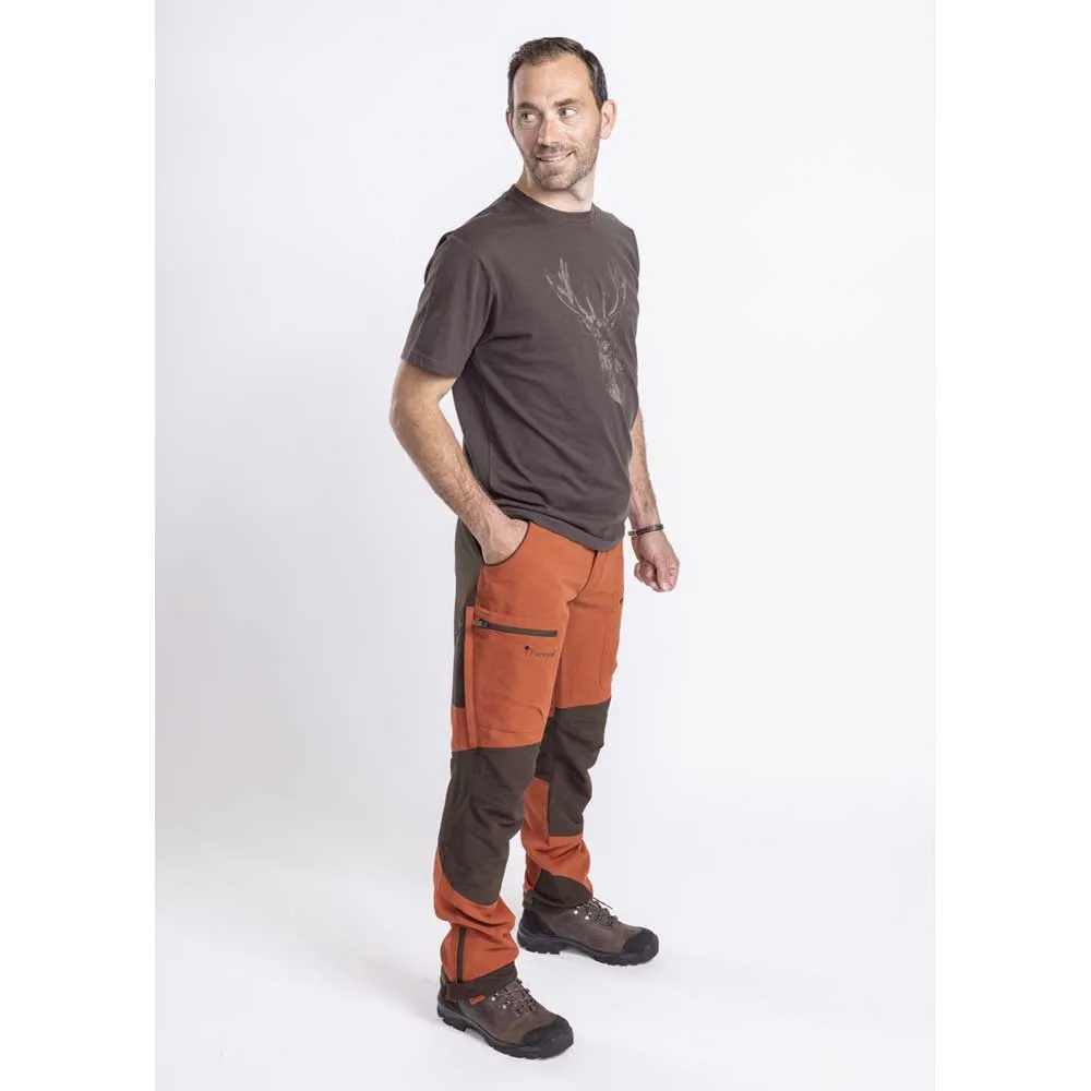 T-Shirt aus 180 Gramm organischer und zertifizierter Baumwolle mit aufgedrucktem Rotwildmotiv. Rundhalsausschnitt. Normale Passform.