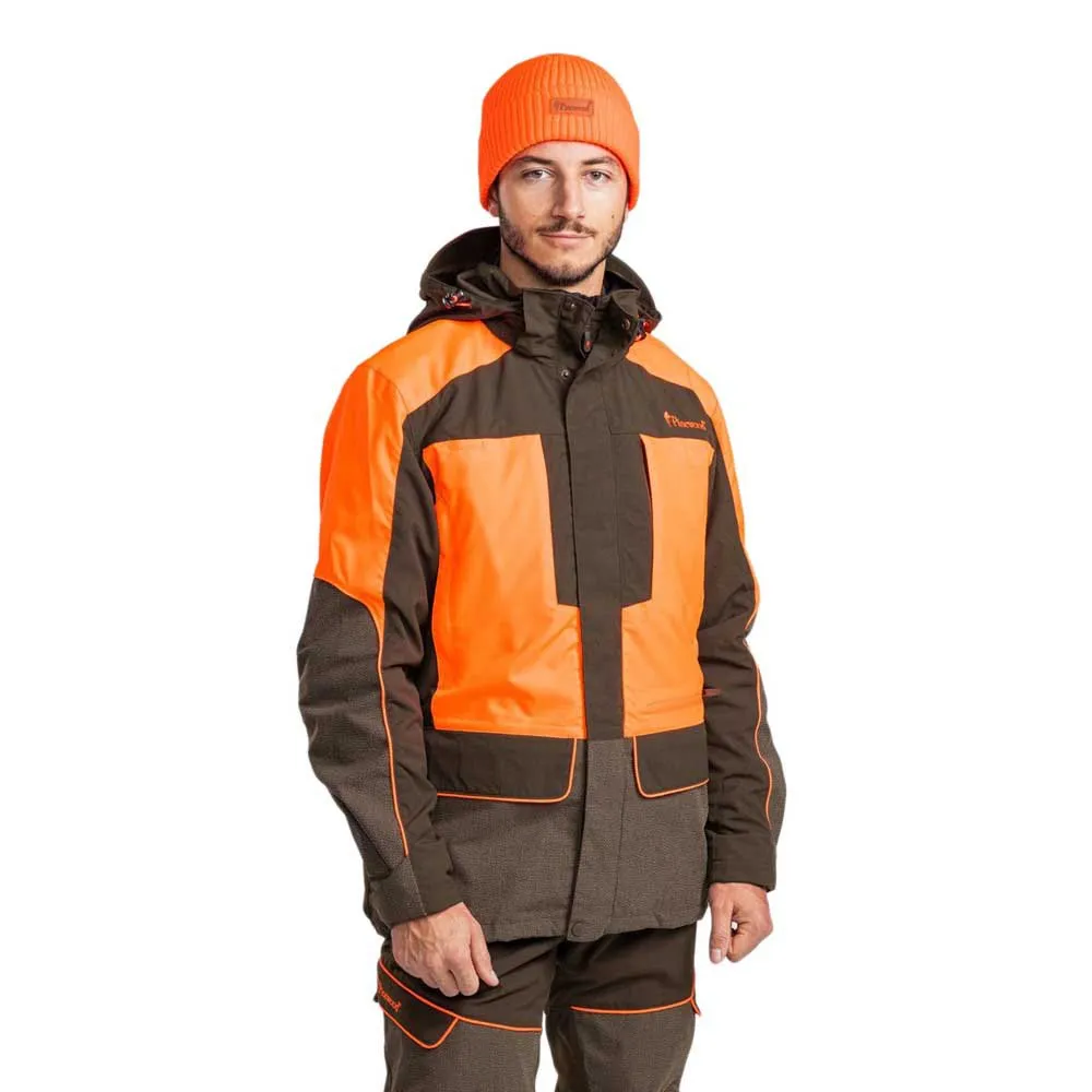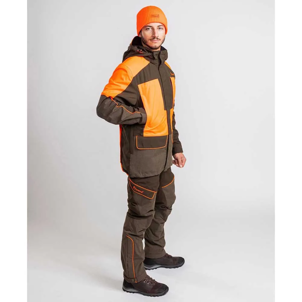 Die Pinewood® Thorn Resistant Jacke ist eine strapazierfähige Jagdjacke mit Kevlar®-Verstärkungen an den Verschleißteilen: Ellbogen, Ärmel und der vordere Teil unterhalb der Taille. Kevlar® ist ein Material, das häufig in Arbeitskleidung und anderen Kleidungsstücken für raue Umgebungen verwendet wird. Die Jacke hat auch ein Futter aus einem dornenfesten Stoff. Dies ist eine Jacke, die für härtere Aufgaben und verworrene Felder geeignet ist, wo sie vor Dornen schützt. Sie ist wind- und wasserdicht mit getapten Nähten und hat Belüftungsreißverschlüsse, die geöffnet werden können, um die Luftzirkulation bei einem höheren Aktivitätslevel zu erhöhen. Sie hat eine abnehmbare Kapuze, die mit einem Riemen angepasst werden kann, und einen verstärkten Schirm, um das Gesicht vor Regen zu schützen. Die Manschetten können mit Kletten und das Futter mit einem Riemen für eine engere Passform angezogen werden. Es gibt eine große Anzahl funktioneller Taschen: zwei Funkgerätetaschen mit Antennenöffnungen, GPS-Tasche, Handwärmertaschen, Wildtasche, zwei Vordertaschen und zwei Innentaschen, alle mit Reißverschlüssen versehen. In der wasserdichten Membran befindet sich auch eine Sicherheitstasche mit Reißverschluss, in der Sie Ihr Handy perfekt verstauen können. An einer der Fronttaschen befindet sich ein D-Ring, an dem Sie Schlüssel, GPS, Wasserflasche, Messer und andere Gegenstände mit Sicherheitshaken befestigen können.Die Jacke schließt mit einem Reißverschluss und hat eine Abdeckleiste mit Magnetknöpfen.